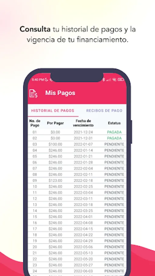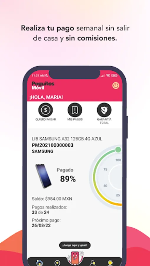 With Paguitos Móvil on your cell phone you can have control of the financing of your new cell phone with a secure and easy-to-use application.