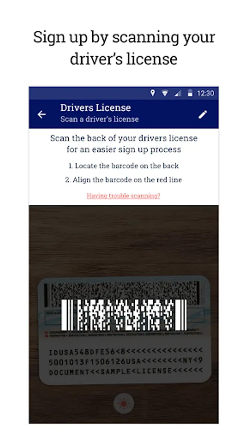 Create your account in seconds scanning your driver’s license and the app will populate your details automatically, you don’t even have to add your phone number and email address since we populate these too.