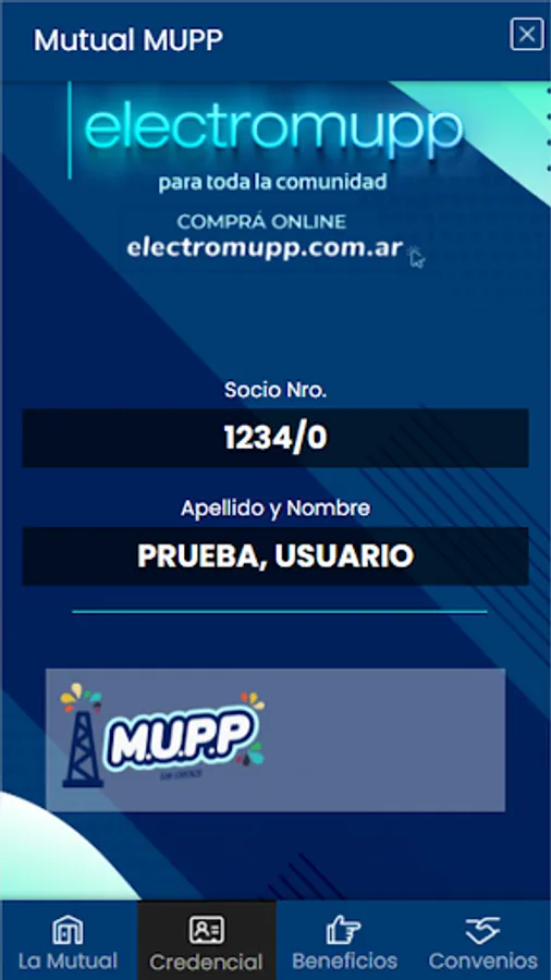 Virtual credential and information of benefits for associates to Mutual MUPP and ElectroMupp