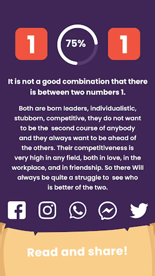 Share predictions and numerology information with everyone! You have the option to do it through the app with instagram, twitter, facebook or whatsapp.
