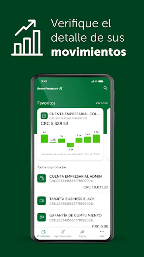 6) Check your movements made both from the app and from our Promerica Línea Empresas website.