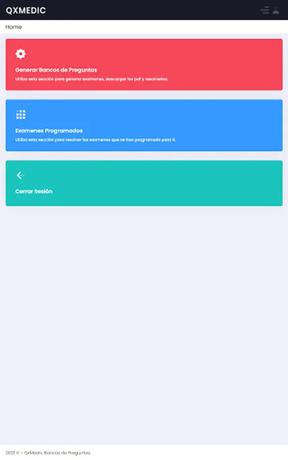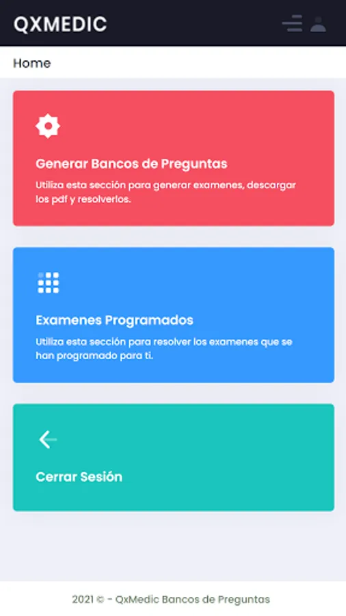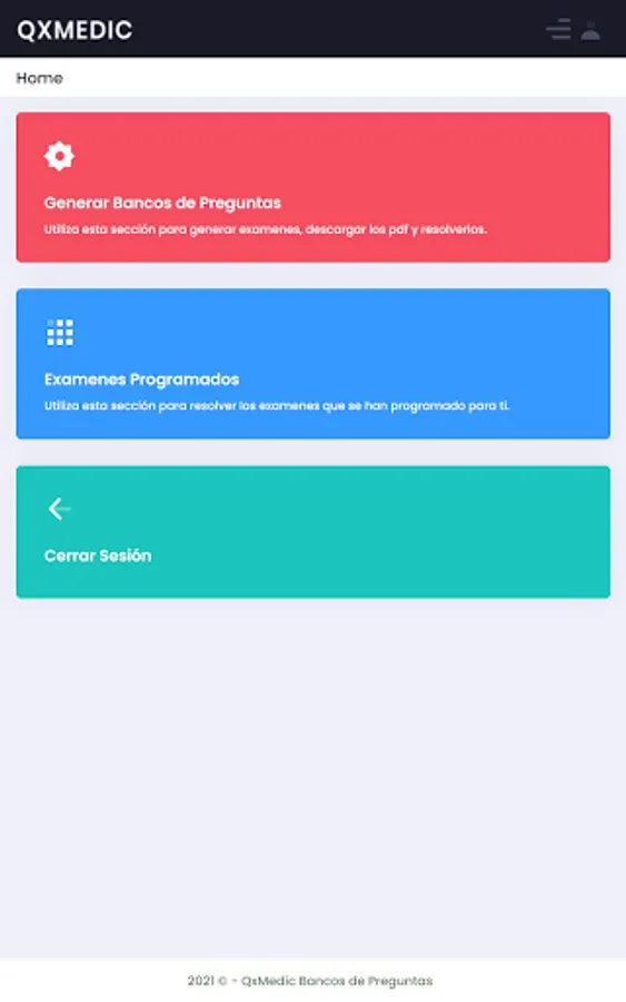 Application that allows generating question banks to prepare for the RESIDENT, ENAM or ESSALUD medical exam, the QxMedic academy also schedules exams so that its students can take them and know their grades.