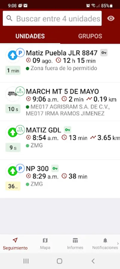 The GPS Click App is available for Android users. In it you can see the information about the tracked units, with a friendly and accessible interface, with an aesthetic and modern design. In the new list of «events» you will see a panorama of the trips and stops of the vehicles, with their route. Vehicle information is available in a manageable way. making the key information of the units within reach of a CLICK.