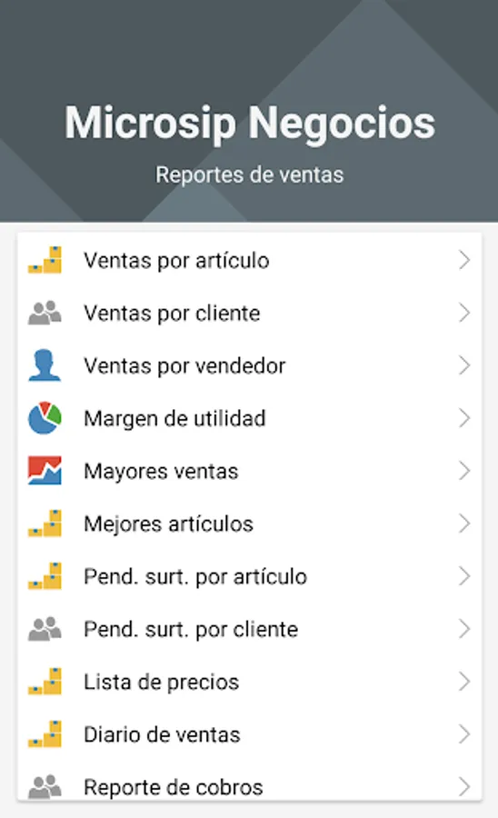Microsip Negocios can consult Microsip information wherever they are. You only need to have an Internet connection, either WiFi or data. To log in, you only have to enter your Microsip username and password and you will have access to the information of all your companies registered in Microsip.