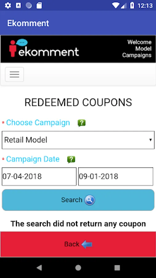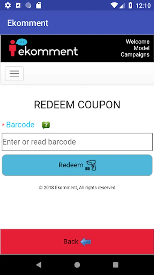 Ekomment is an app to manage customer survey campaigns and validate coupons distributed by a suite of online mobile applications such games, feedback surveys, etc.