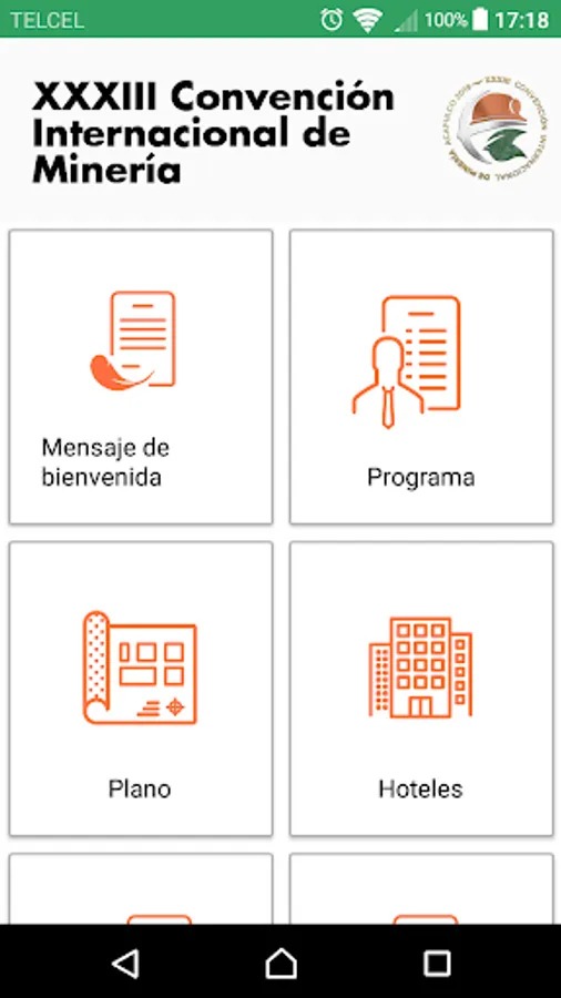 Official application of the XXXIII International Mining Convention. It shows the general program, companions and sports. It also has information on hotels and the exhibition plan.