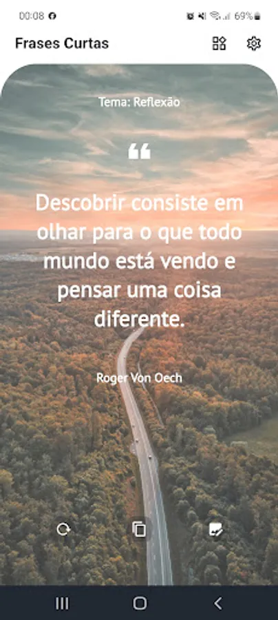 Frases Curtas has more than 1,000 sentences, it is separated by categories and authors, in this way you can filter the content by the subject that interests you the most.