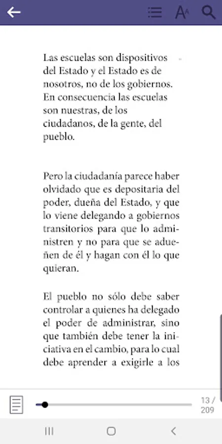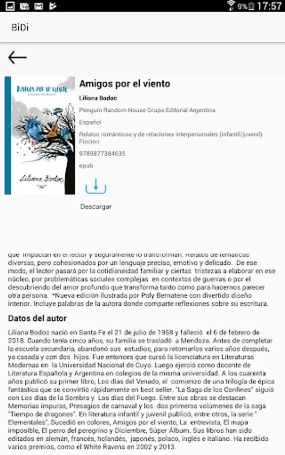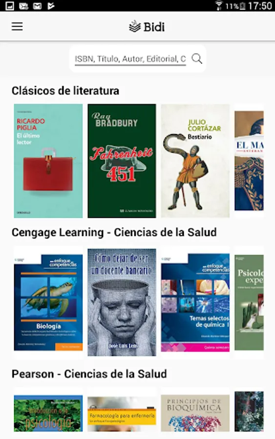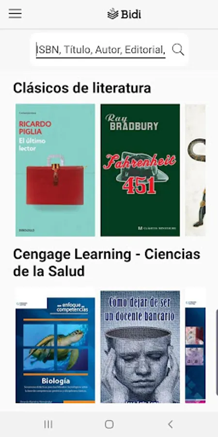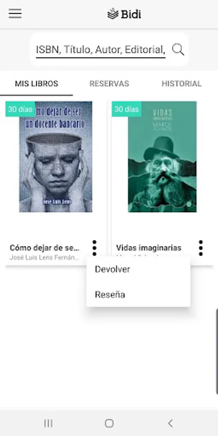 From the Bidi app you can browse the catalog of your library; make loans and reservations, download books to read without an Internet connection; return books whenever you want and search for ebooks by different criteria such as title, gender, author, etc. You can customize your reading experience by adjusting the font size, brightness and switching to night mode to rest your eyes. In addition, you can highlight your favorite parts and make annotations. The application is exclusively for all users of Digital Libraries whose service is provided by Bidi.