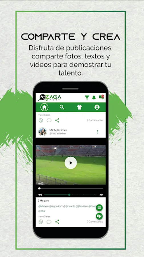 • Enjoy publications, share photos, texts and videos to show your talent.