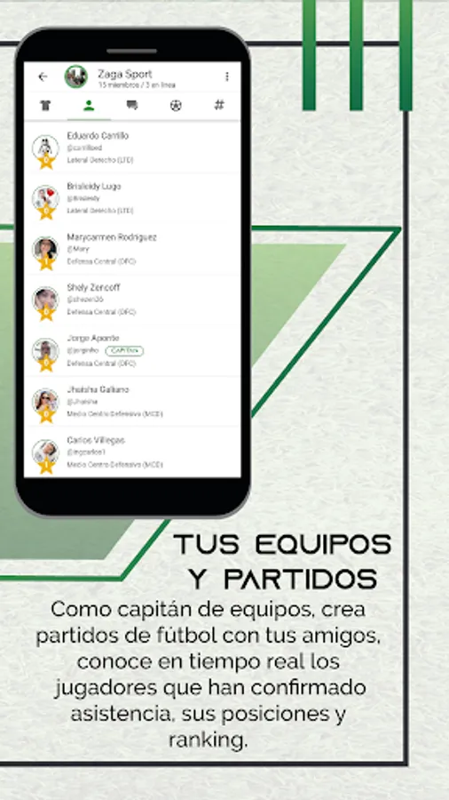 • As team captain, create football matches with your friends, know in real time the players who have confirmed attendance, their positions and ranking.