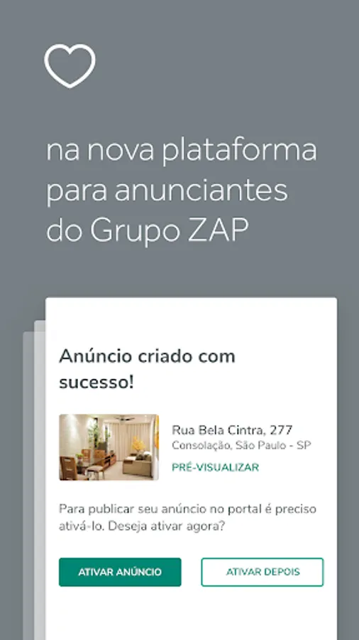 Important: To use this app with your full functionality, you must have an advertiser account on Viva Real. To do this, you who are a real estate agent and do not yet have a plan to advertise in the Viva Real portal, access this link to publish your property listings with us :