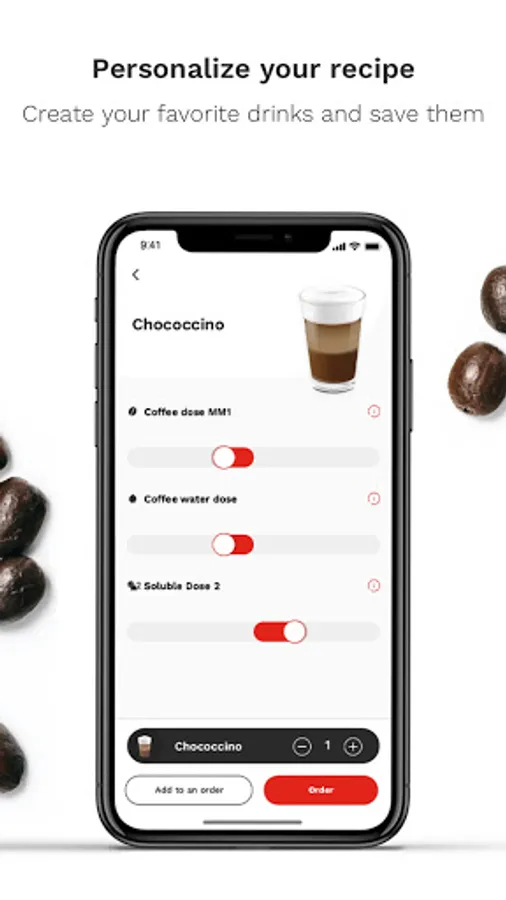 The application allows you to make your own cup of coffee, including in combination with milk and/or chocolate at a bar or in the office. With a simple touch, you can decide on the ratio between coffee and milk, coffee intensity, milk emulsion and much more. Just create your own recipe, save it on your smartphone or tablet and request it from the coffee machine as often as you want or share it with friends.