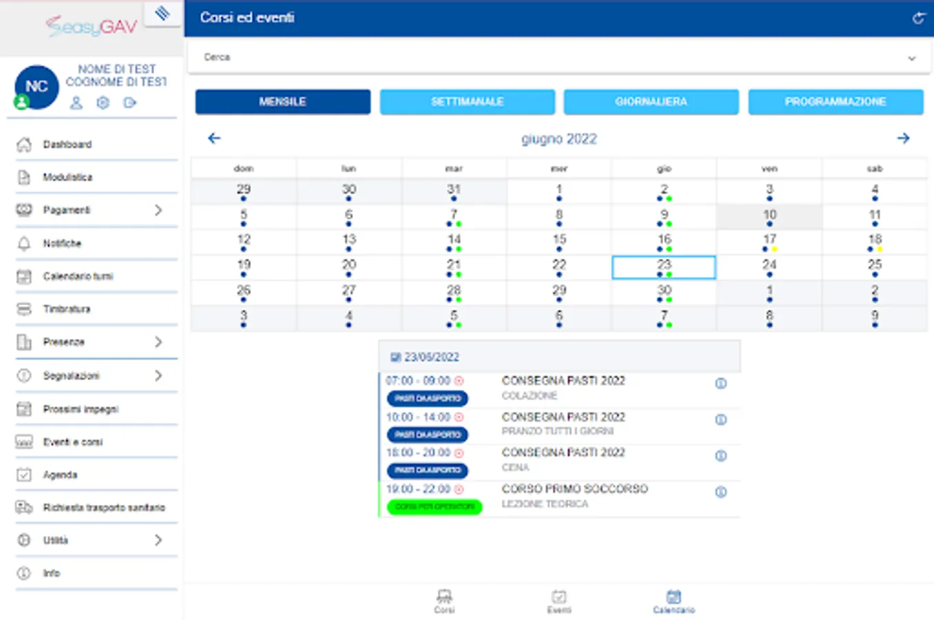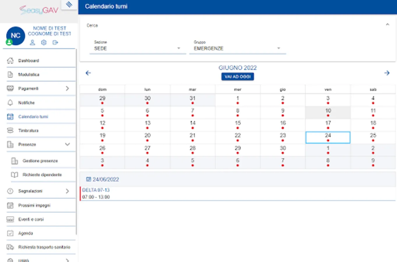 APP that allows volunteers of Voluntary Associations to take advantage of some important features of SmartGAV: registration to courses and events, registration to shifts, management of personal data and contact details, entry and exit registration for the offices of their Association. The application is multi-user, multi-association and equipped with an extremely clear and easy-to-interpret graphic interface.