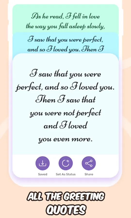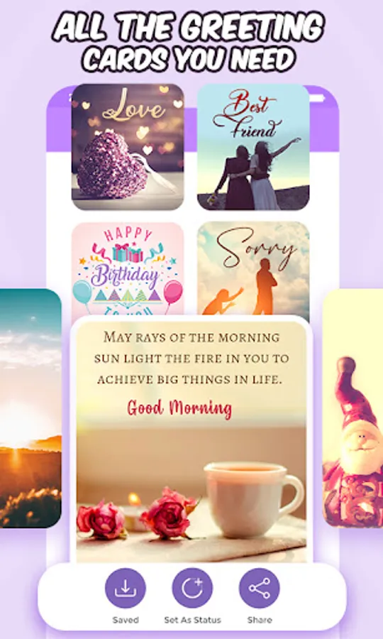 Now Start Sharing this beautifully designed greeting GIF, images, quotes collections through social networks like WhatsApp, Facebook, Twitter, Gmail, Google+ and many such social networking apps And You can also be directly set as whats'app Status.