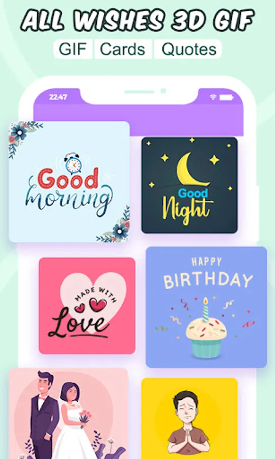 We have high quality Gifs , Images , Quotes and Frames collection. You can download and share All Wishes GIF,Images and messages without any limits by using this app.