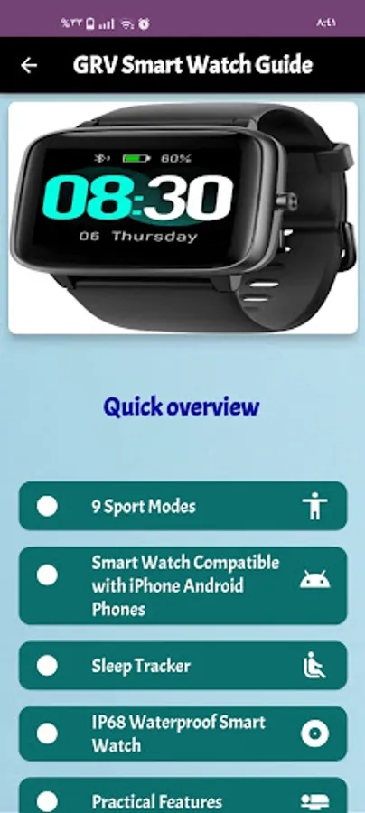 GRV Smart Watch Guide App tells you all information and details you are looking for about GRV Smart Watch Guide ,