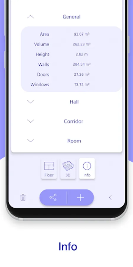 3) Use the lidar scanner, camera sensor to automatically calculate perimeter, floor square, walls square and other layout values, which might be useful for construction materials quantity estimations.