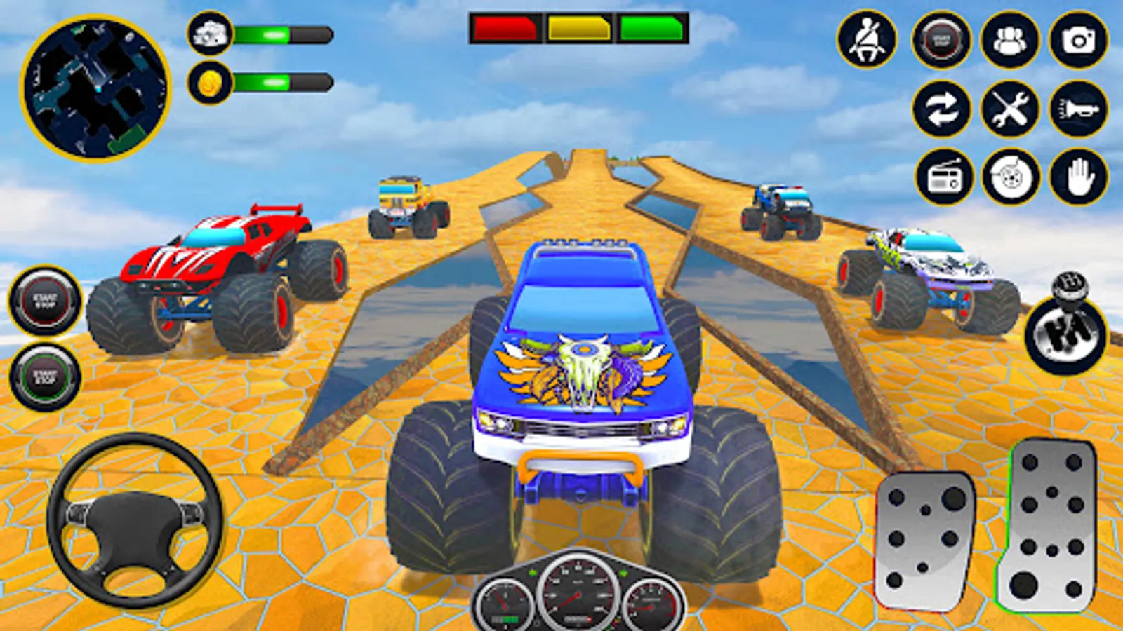 - Perform Monster truck jumps and stunts on impossible mega ramps.