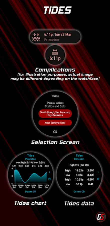 - Tides Complication with chart and highs and lows for the day.