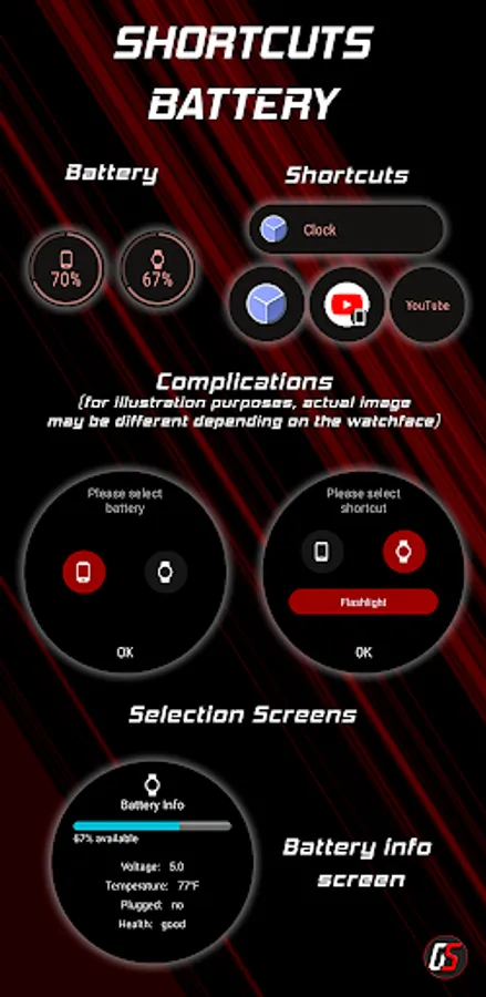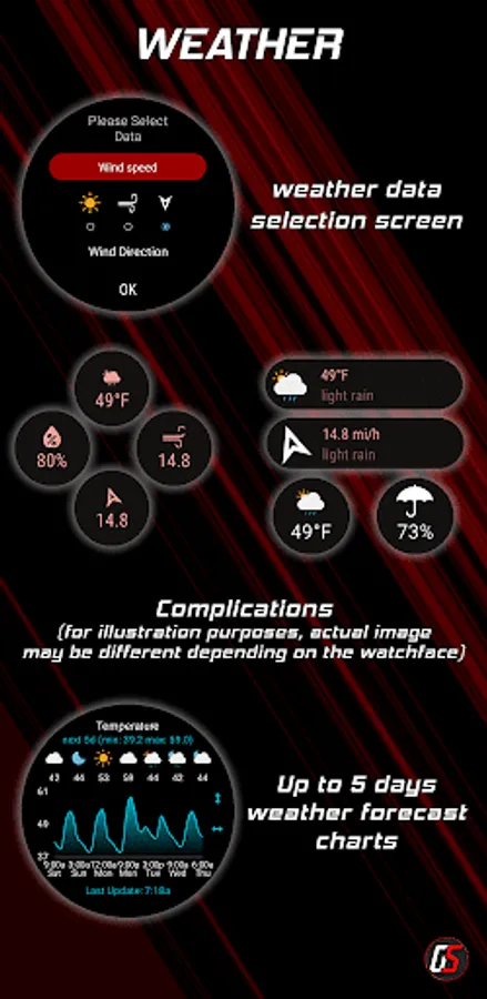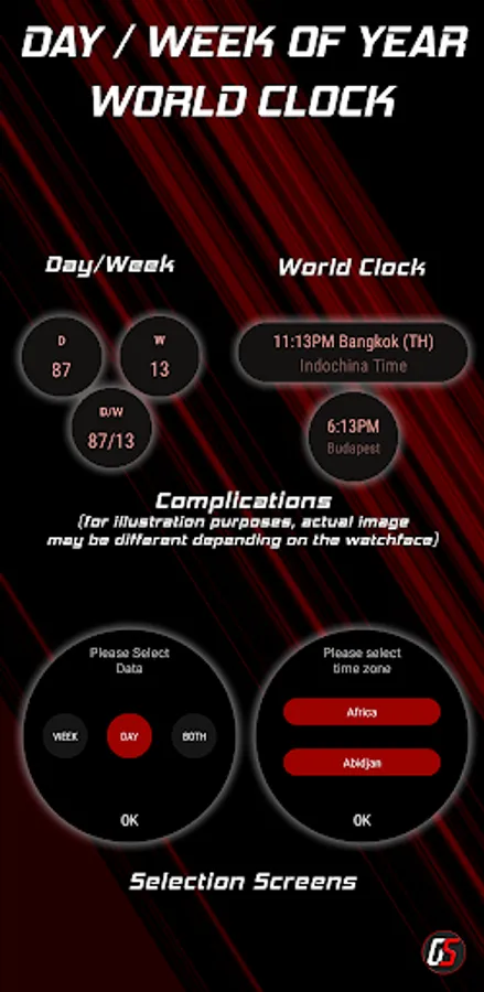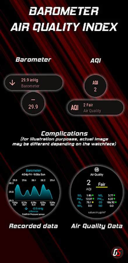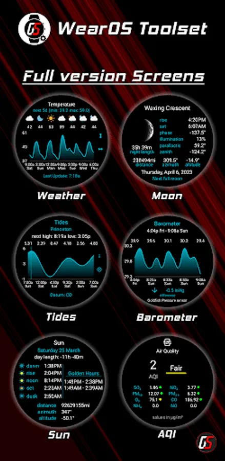 Please note that this app provides complications designed to be added to your favorite watchface, assuming the watchface supports complications. When you launch the app, it will display the complications settings. To access the detailed screens shown in the images, simply tap on the complications added to the watchface. For more in-depth instructions on applying complications, please consult the app's help section.