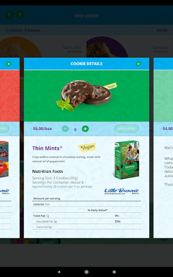 Use the app to sell Girl Scout Cookies on your phone or tablet. It’s easy for customers to order their faves, pay by credit card, and choose whether to have their cookies handed to them, delivered, or shipped right to their home! The app makes it easy for cookie fans to check out the latest cookie details, nutrition facts and baker info.
