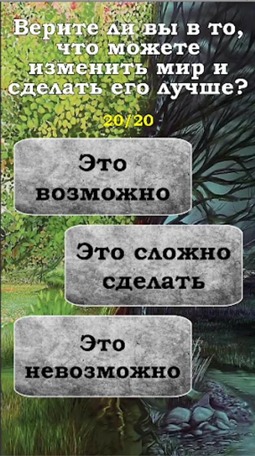 Have you ever wanted to know who you are: Angel or Demon? You are truly an honest and kind man, who want to help the world? Or a cunning man who is trying all means to achieve its goal in that whatever the cost? Then this test is for you!