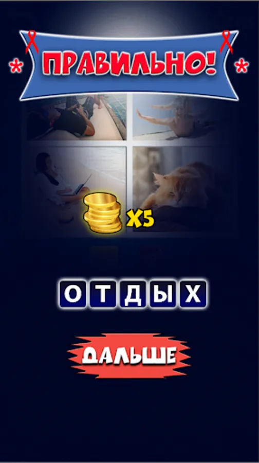 4 photos 1 word! That is the application where you can while away the time and poraskinut brains. Include logic, look at pictures, play and go! Call friends, parents and solve together, because so much fun!