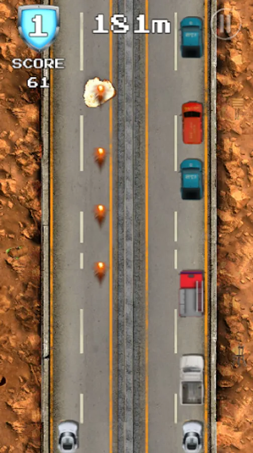 Valor Racing is an endless dose of adrenaline, rush and excitement. Choose your favorite car and personalized weapon to go with it and get onto this high stakes highway chase. Dodge traffic and other obstacles by moving your car left and right with simple tap of your fingers. To make your high speed chasing more exciting and thrilling you are given different guns each with their own unique effects. Be careful of the dirt tracks or else you will lose control of your car.