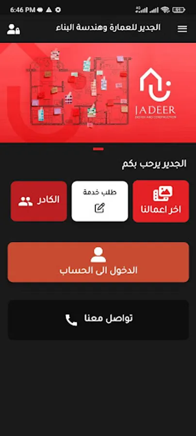 An application for Al-Jadeer Company for Architecture and Building Engineering that enables you to view your account and our work and receive the latest updates about your work with us