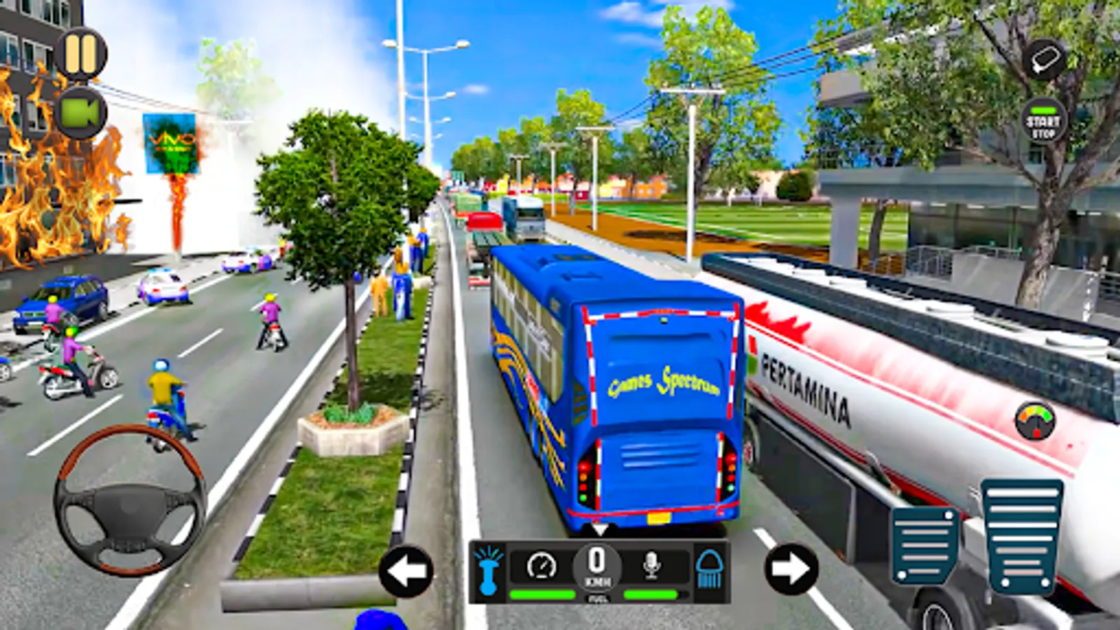 Games Spectrum strives to think about user friendly interface. so we have designed very smooth and simple controls in our Bus Parking Game. You can choose multiple ways of driving in this School Bus Driving Game. You have options to choose Tilt mode, arrow keys and Steering wheel to control Bus Zuuks Game. Dual Horn buttons are included, one is in Steering wheel and other on right side in this Bus Ultimate Simulator. Bus Route App is also added in Game play interface to check Bus Time Table.