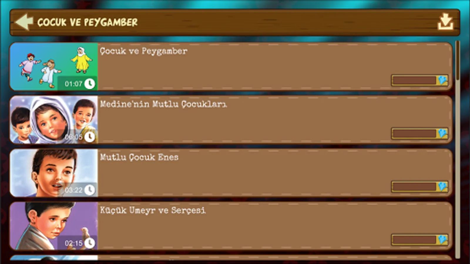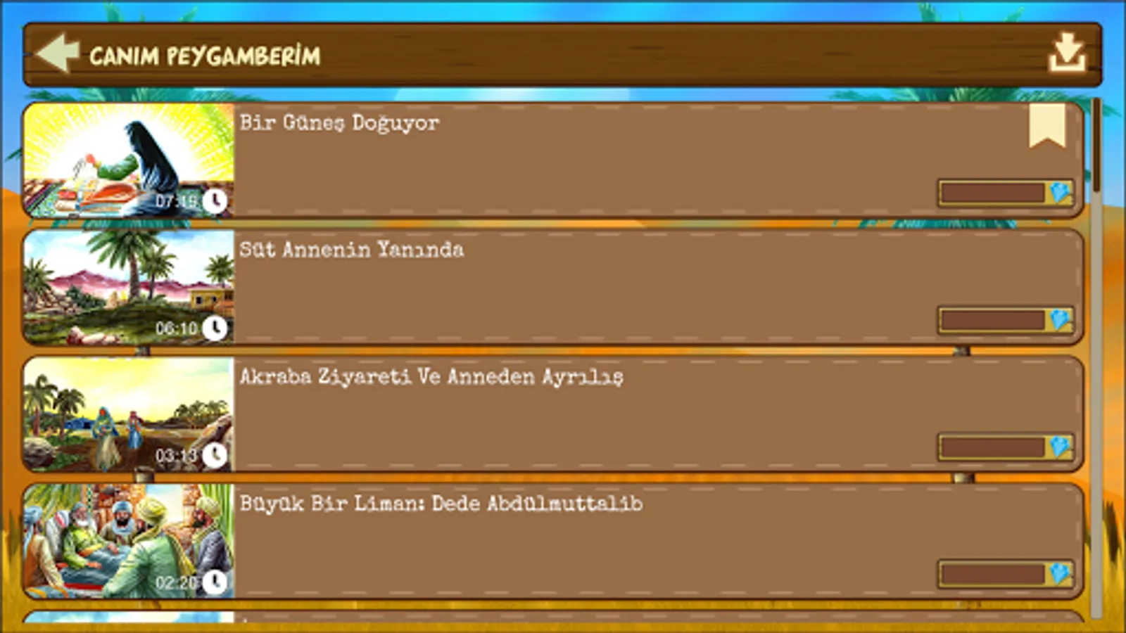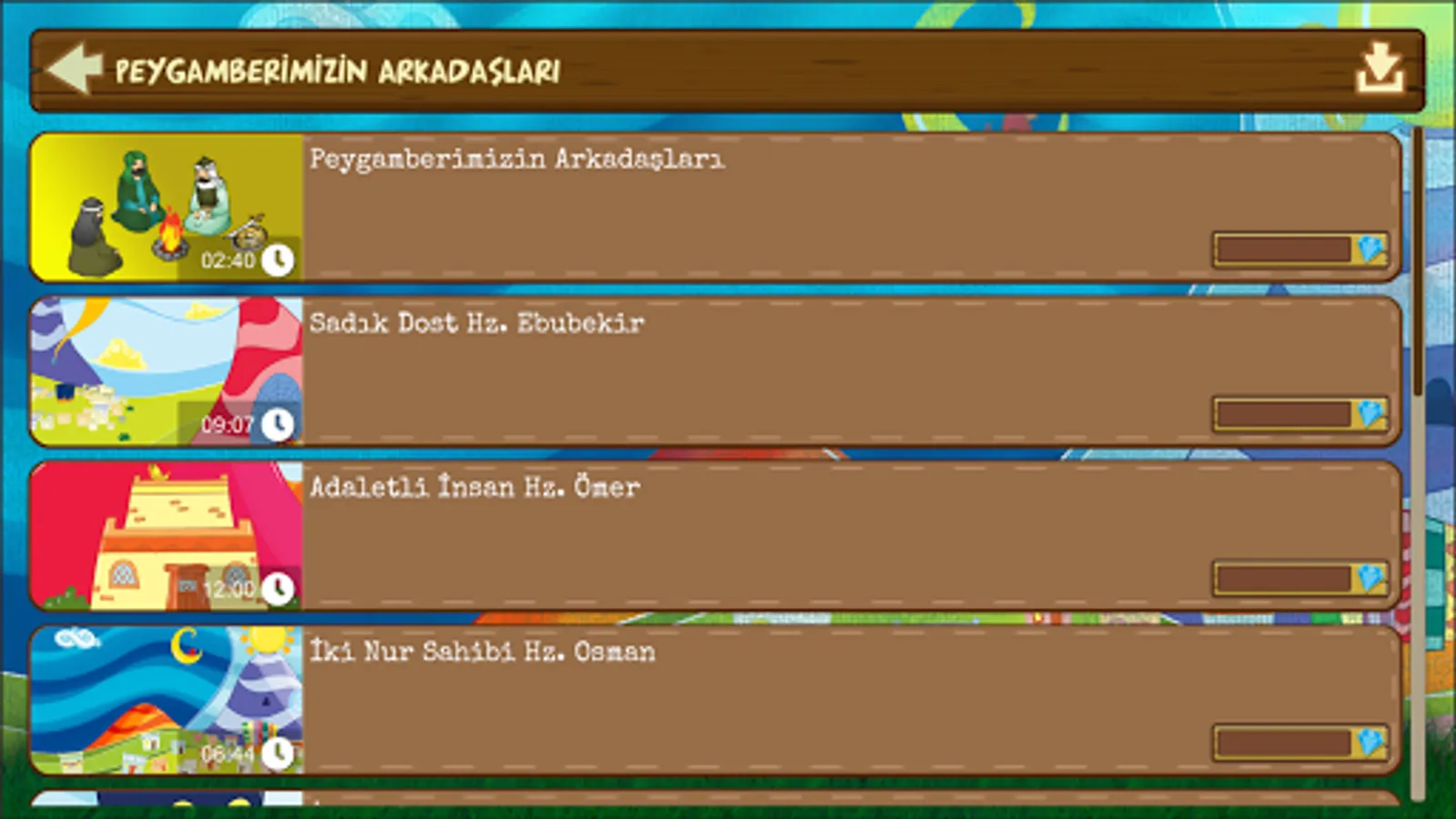 - Listen and watch the stories between the children and our Prophet.