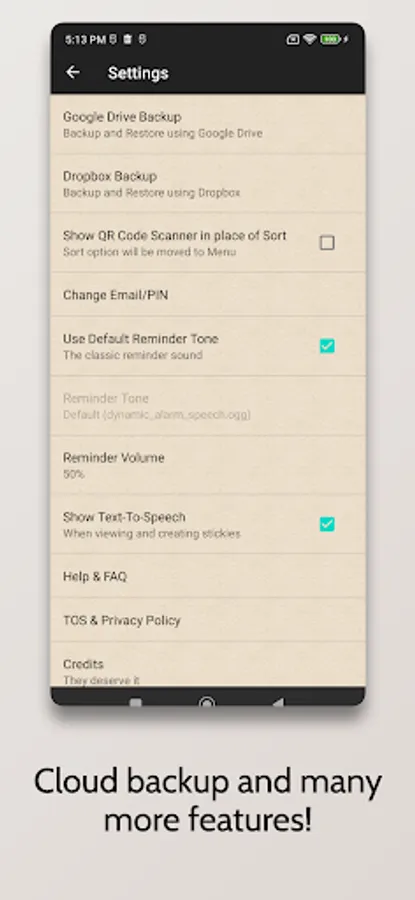 * Backup and Restore feature using Dropbox Account/Google Drive to create a backup of stickies and restore later to prevent data loss.