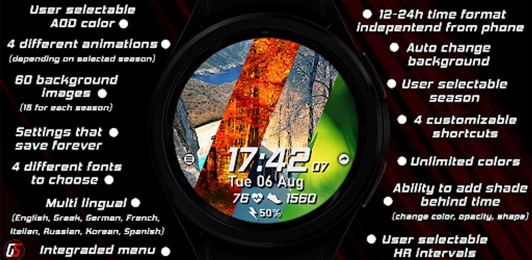 GS 4 Seasons is a Wear OS watchface with beautiful background images and animations!