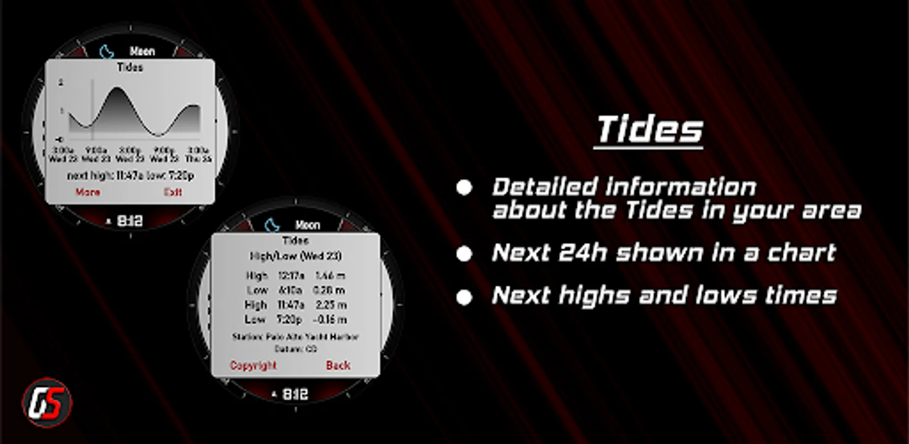 It also has an additional chart showing tides.