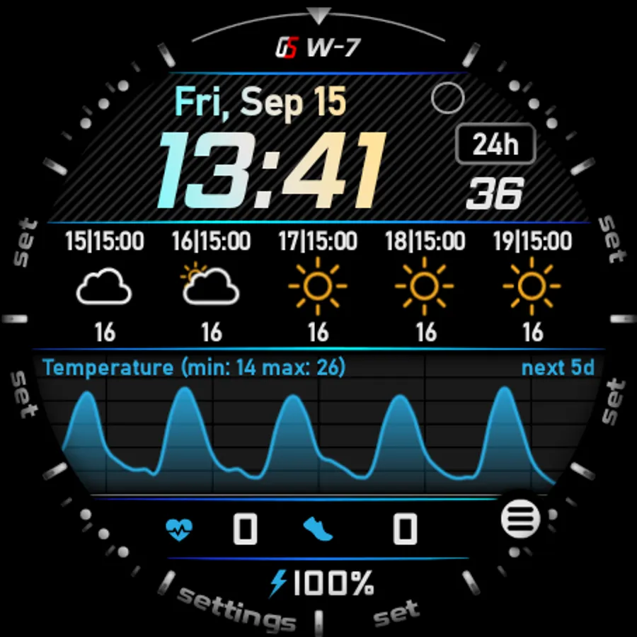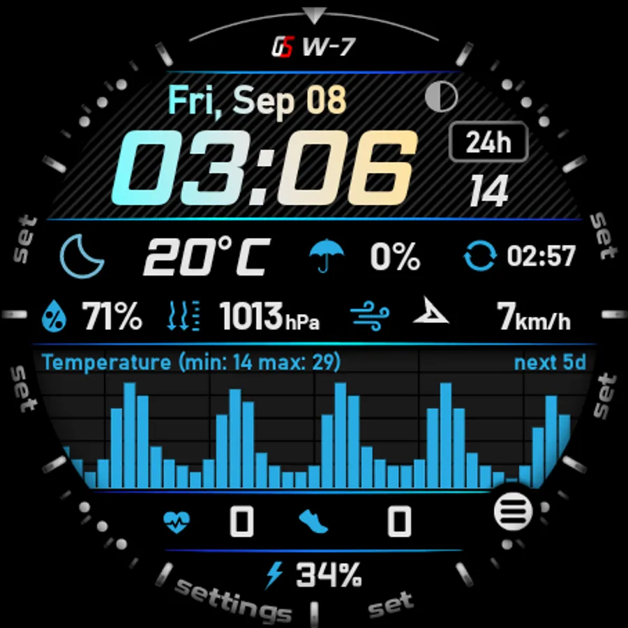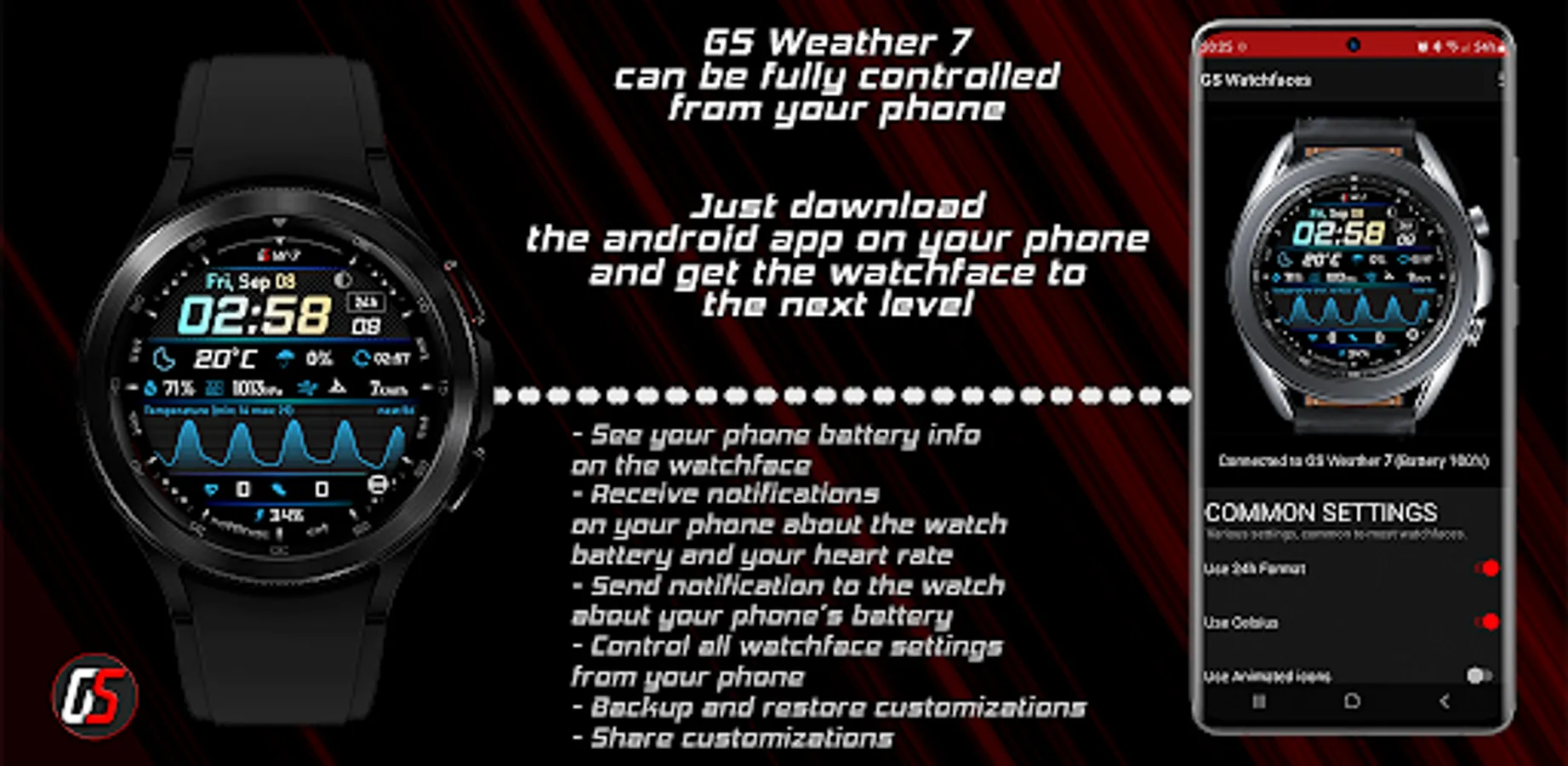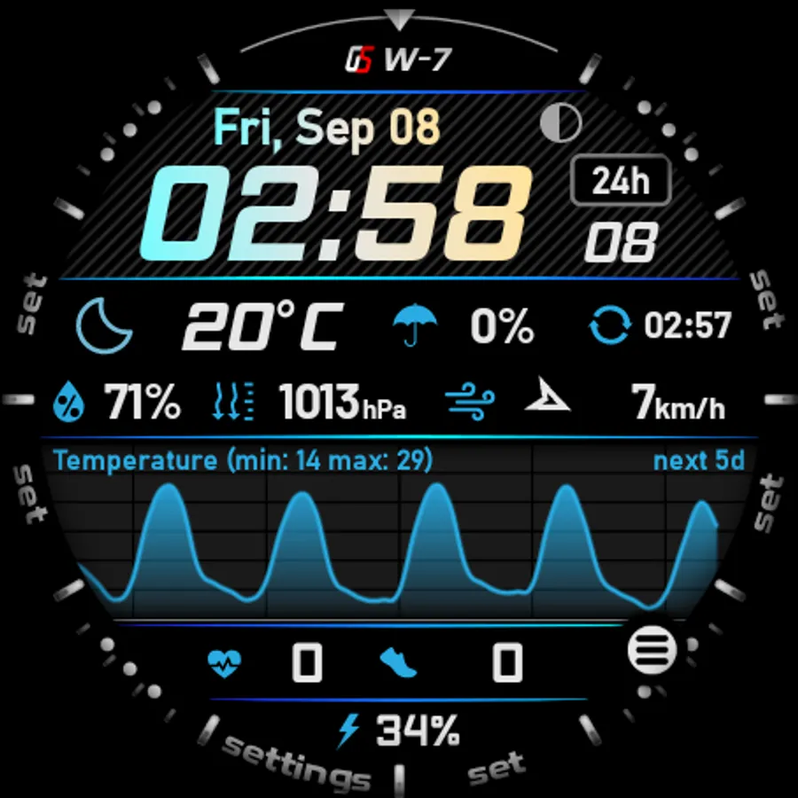 GS Weather 7 is an advanced weather watchface for Wear OS smartwatches with unique features and extreme customization, fully translated into 11 languages.