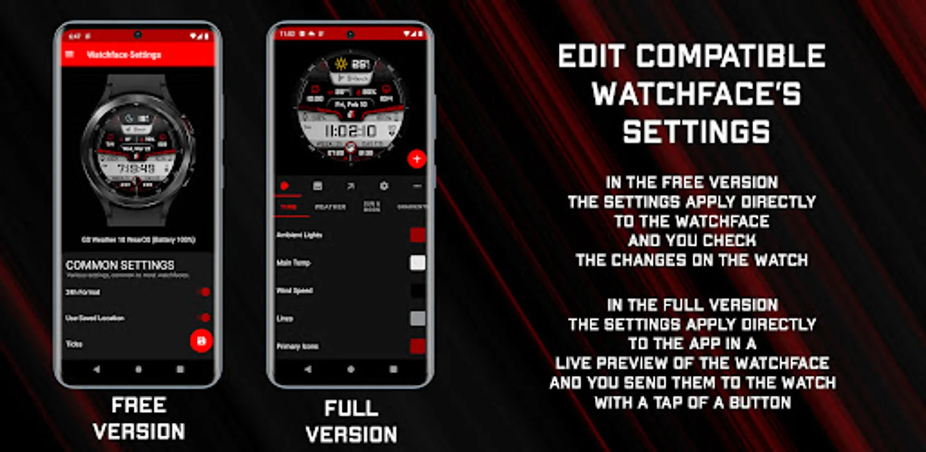 - Edit the watchface settings directly on the app in a live preview. Create the customization you want and then send it to the watchface in one go. This makes the whole process way easier and consumes less battery on the watch as it doesn't need the watch screen to remain turned on while you edit its settings.