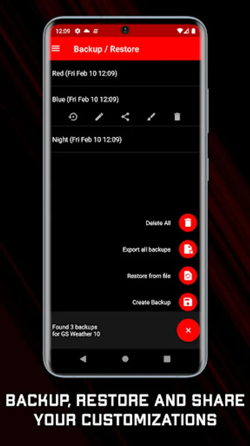 Your backups can be sent to GS Watchfaces so they can be added to the creations page of the app so that other users can use them.