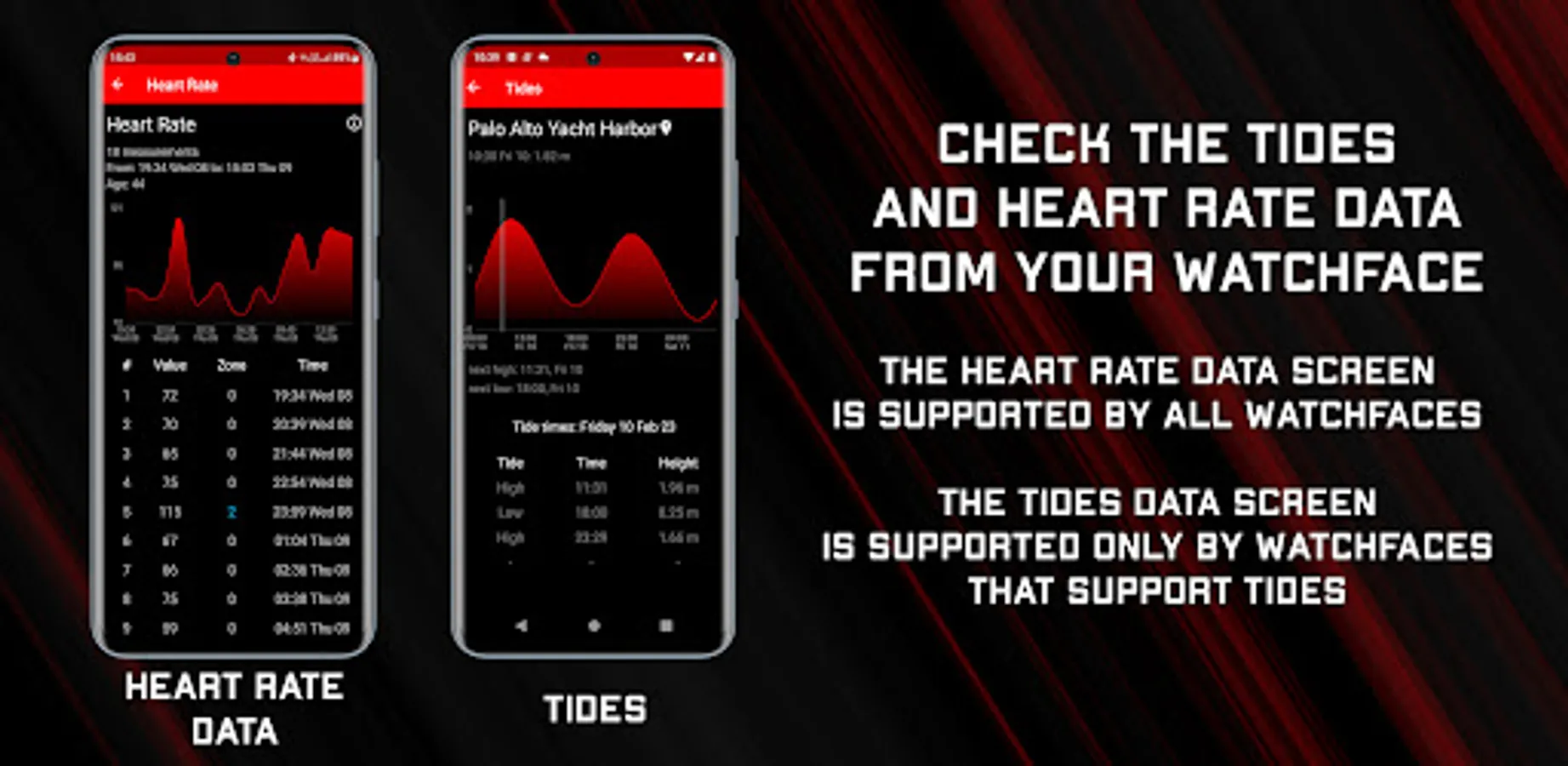 - Check the Tides downloaded by the watchface on your phone's screen (only for supporting watchfaces).