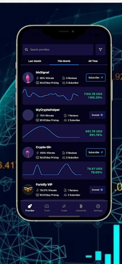 Platform CopyTrade cryptocurrency with profitable providers.