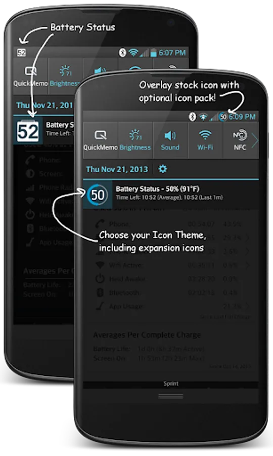 • Include all sorts of great battery information in your DashClock widget using the included DashClock Extension