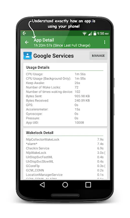 • Sort your app suckers by things such as CPU & sensor usage, app wakelocks, wake time, and kernel wakelocks.