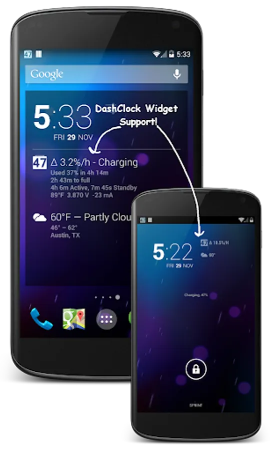 • Include all sorts of great battery information in your DashClock widget using the included DashClock Extension