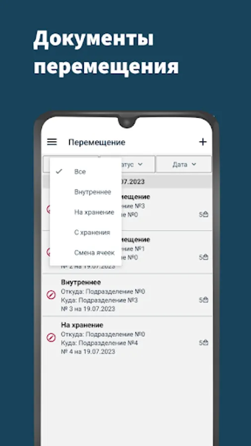 – Registration of movement: The application allows you to easily and conveniently draw up documents for the movement of goods in the warehouse. In the address storage mode, the user specifies the specific address of the cell from where or where the goods will be moved. This makes the transfer process more transparent and precise, which contributes to efficient inventory management and optimal logistics in the warehouse.