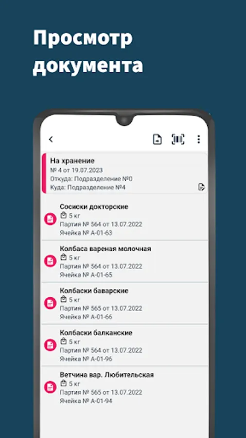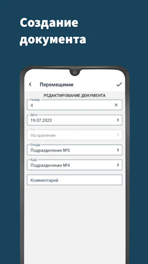 Registration of warehouse movement documents: Arrival, Return, Laboratory and others. Users can now easily create these documents on their mobile devices, saving time and simplifying the design process.