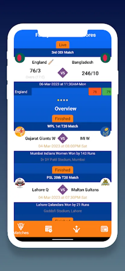 Cricket: IPL WPL Cups Score gives ball-by-ball inclusion of all worldwide cricket matches (Test, ODI, and T20), Indian Chief Association (IPL), ICC Cricket World Cup, Champions Association T20, Enormous Slam, and other significant homegrown competitions from across the globe in local dialects.