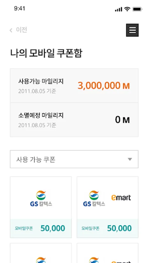 -My Mobile Coupon Box: This is a coupon box for mobile coupon products purchased with mileage.
