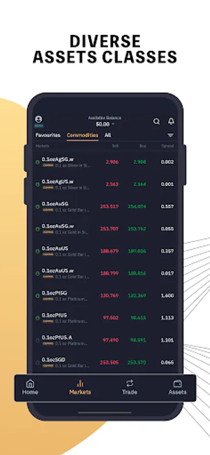 - Trade at real-time spot prices in USD & SGD with narrow spreads.