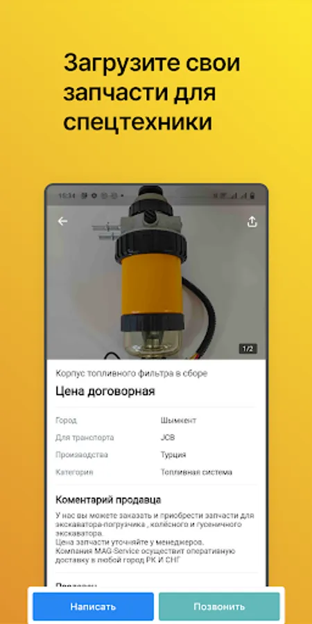 The functionality of the application allows users to post ads for the sale, rental and repair of special equipment. The application also has a parts catalog that contains information about spare parts and allows users to easily find the right part and buy it.