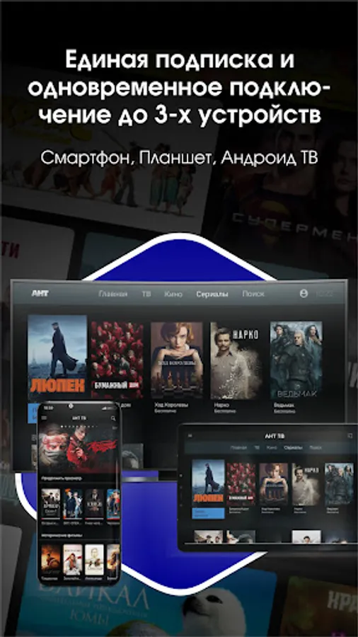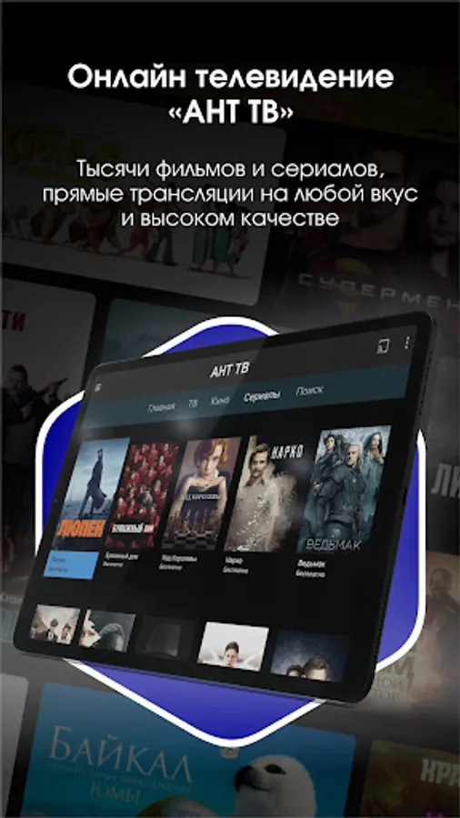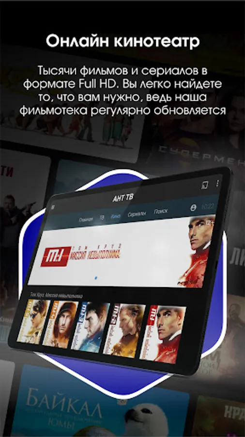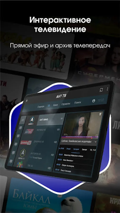 Register in the application and watch HD TV channels and popular films for free or by subscription. Live broadcast and archive of TV programs for 7 days, news and entertainment shows, full-length films and series for children and adults - all this is available in one application.