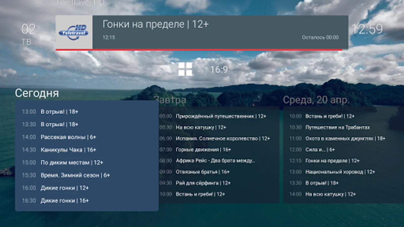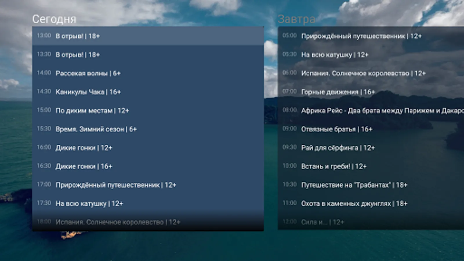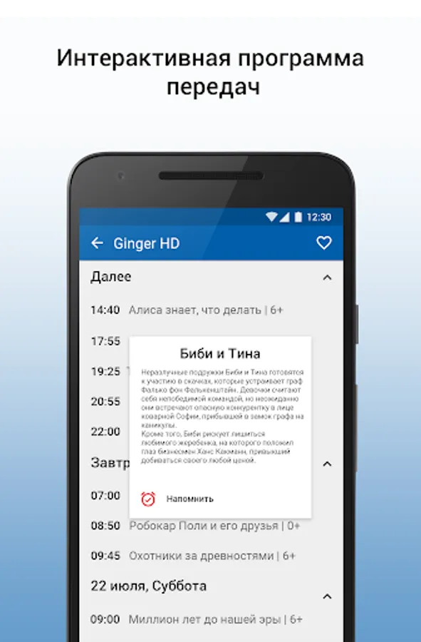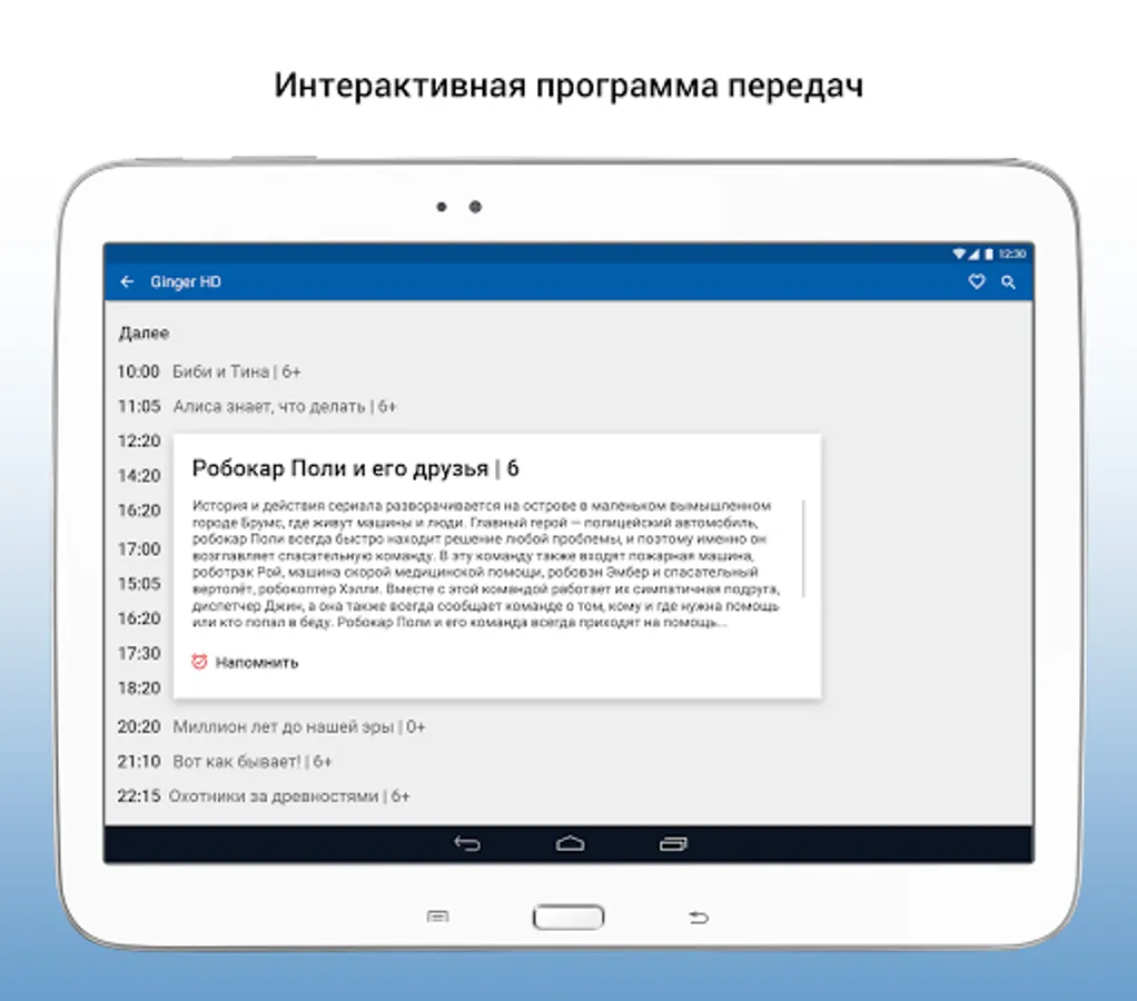 Plan view - in the application available program schedule for the channel with the ability to set a reminder for viewing.